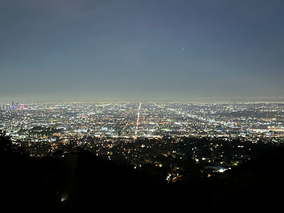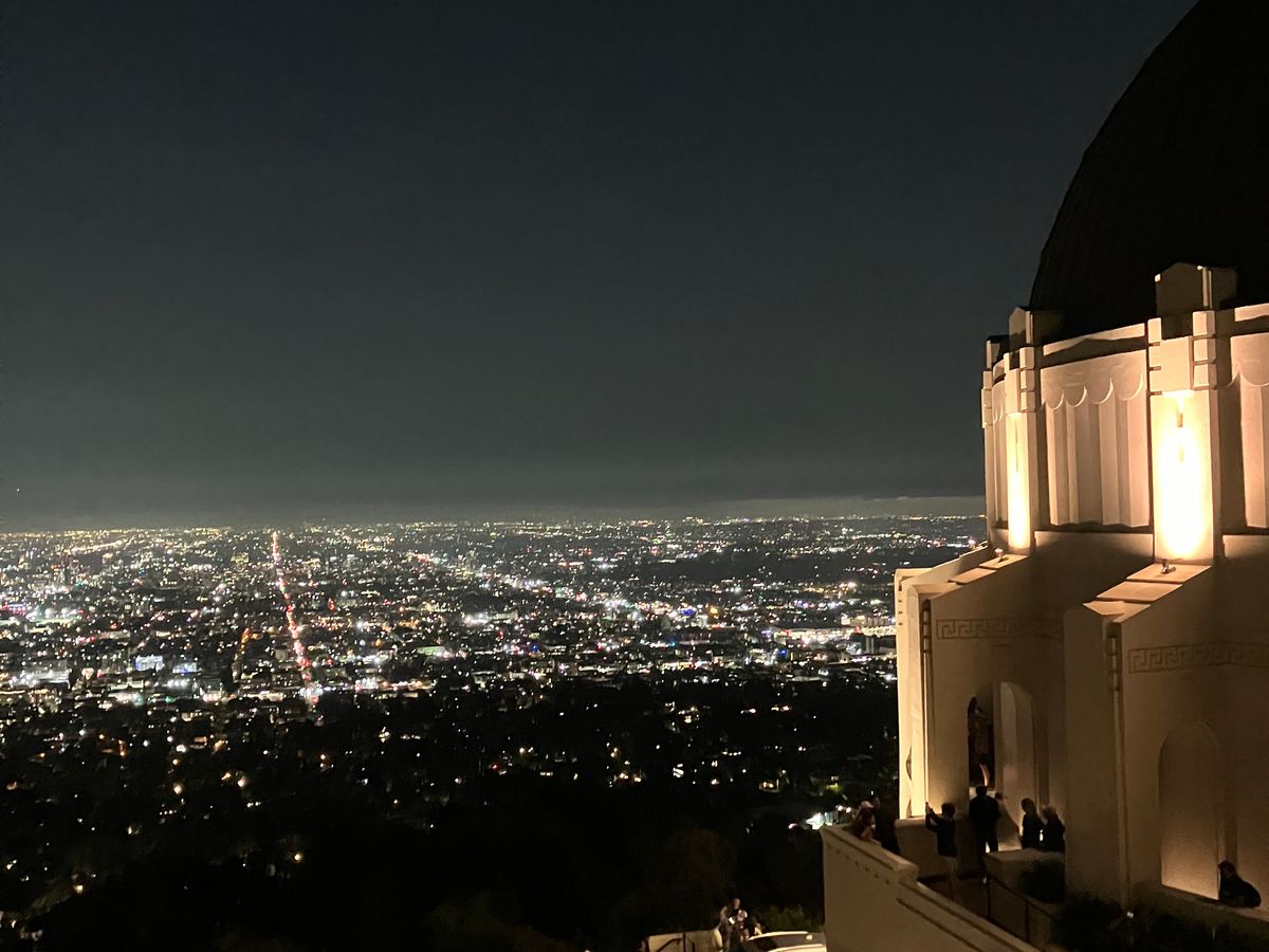 ロサンゼルスの街を一望、素敵な夜景でしたし、ハリウッドの文字も見えました。ただ、人が多く大混雑してました。ゆっくりと夜景を楽しむ雰囲気ではなかったのが残念でした。