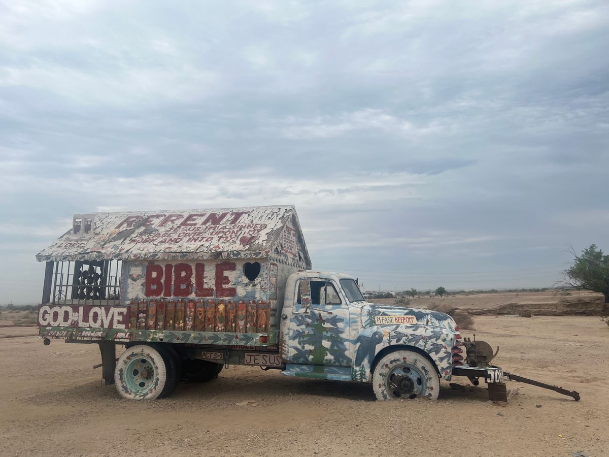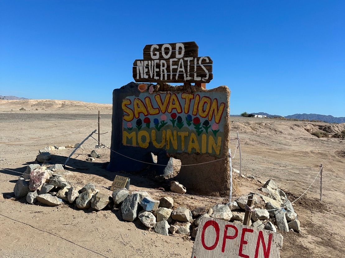 サルベーションマウンテンは砂漠でかなり暑いです。