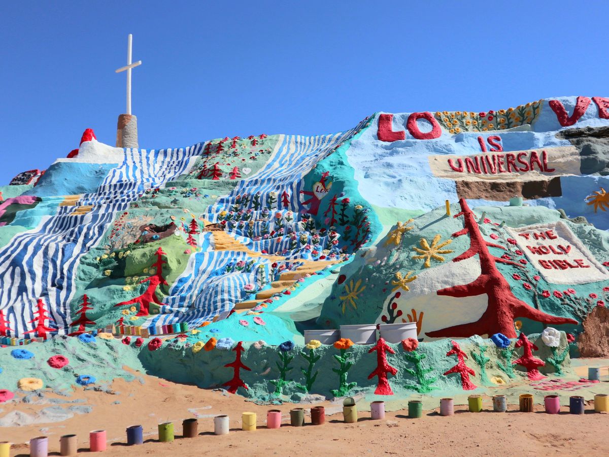 サルベーションマウンテンは、想像よりも日差しが強く暑さがきつかったため、もっと飲み物を持参するべきだったという感想です。