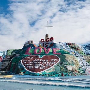 連日、雨続きでサルベーションマウンテンも最初雲りでしたが、ガイドさんのらはからいでイーストジーザスを先に周り、しばらくサルベーションマウンテンで写真を撮っていると、なんとか晴れました!!