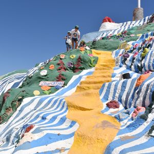 子どもたちのことを配慮してくれてか、最初にサルベーションマウンテンに行ってくれました。参加日は涼しく気持ちのよい一日でした。サルベーションマウンテン頂上からの眺めも素晴らしく、愛とアートにも触れられ大満足。