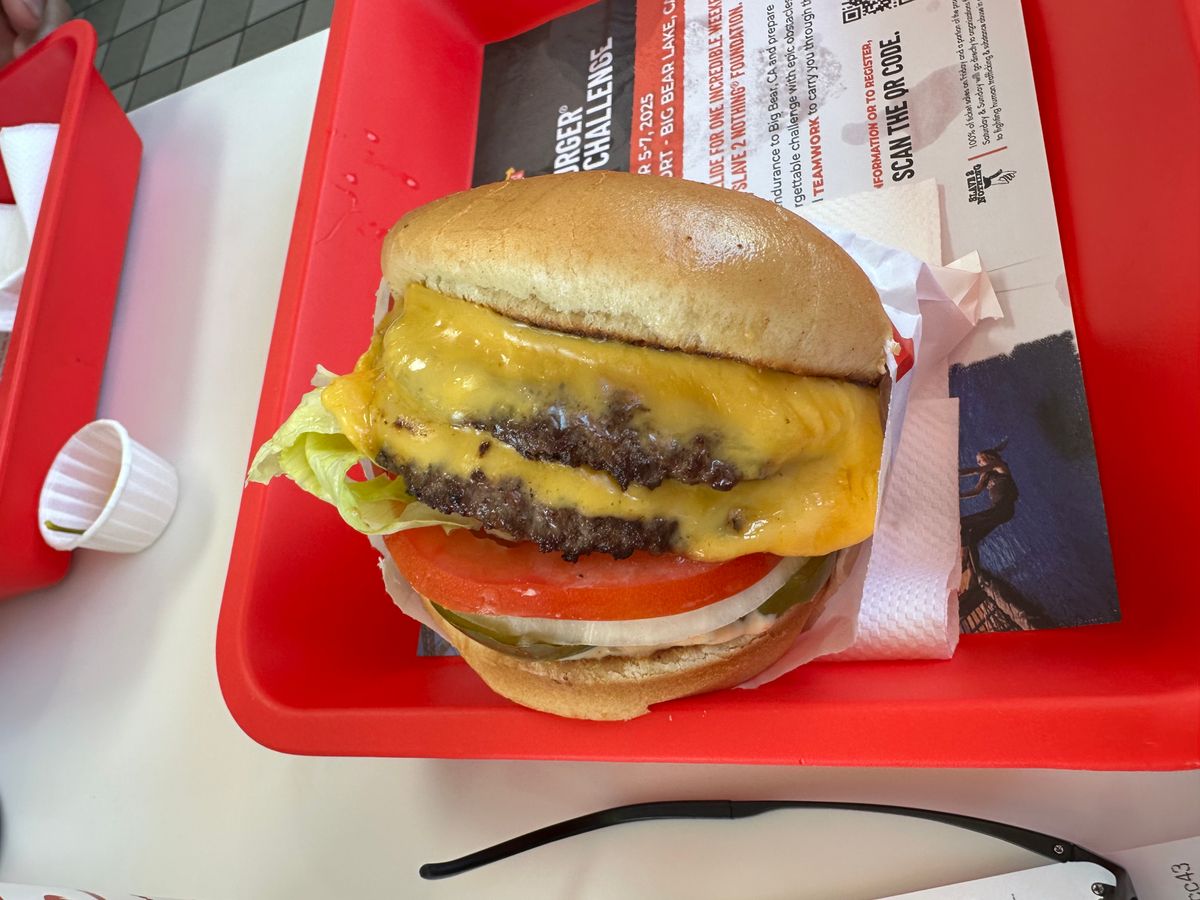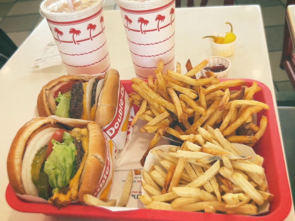 IN N OUTのバーガーはお薦めのとおり、野菜がフレッシュでとてもおいしかった。