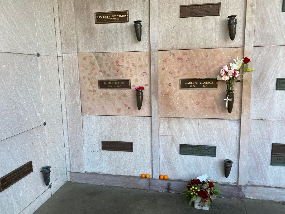 誰でも入れる墓地で、他にも欧米人の観光客が来ていました。マリリンは、なんと火葬ではなくそのまま?保管されているとのこと。見た目はコインロッカーのようなお墓で、もちろん扉を開けられませんが、この中にマリリンが!と思うと感慨深いです。