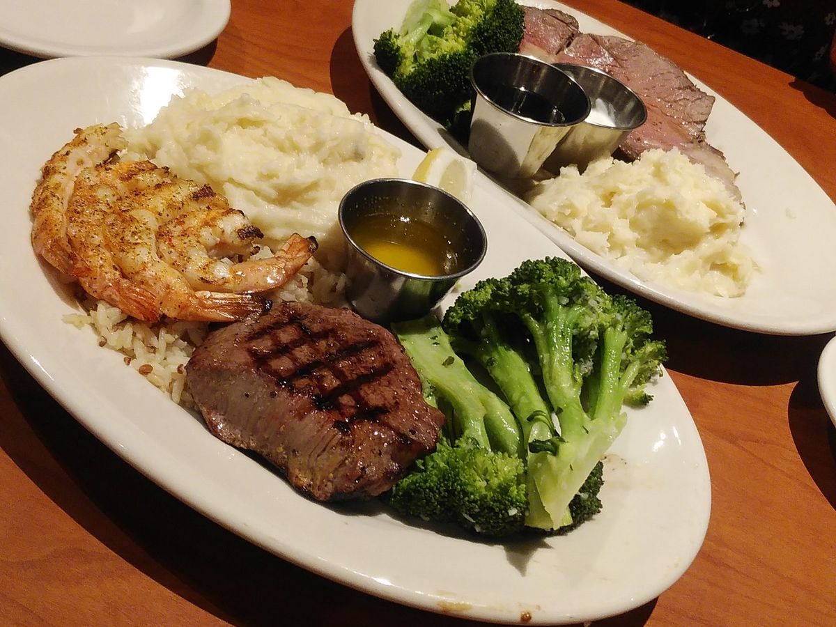 正直、レストランはあまり期待していなかったのですが、いい意味で予想を裏切る美味しいレストランでした。ブラックアンガスステーキに行きましたが、前菜のスープもおいしかったし、パンも黒糖風味のおいしいパンでした。サーロイン&グリルドシュリンプとプライムリブと2種類食べました。50代の夫婦にとっては少し量が多めかも。ただ残りはお持ち帰りもできました。