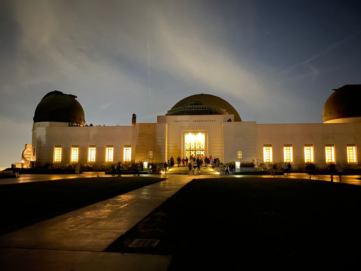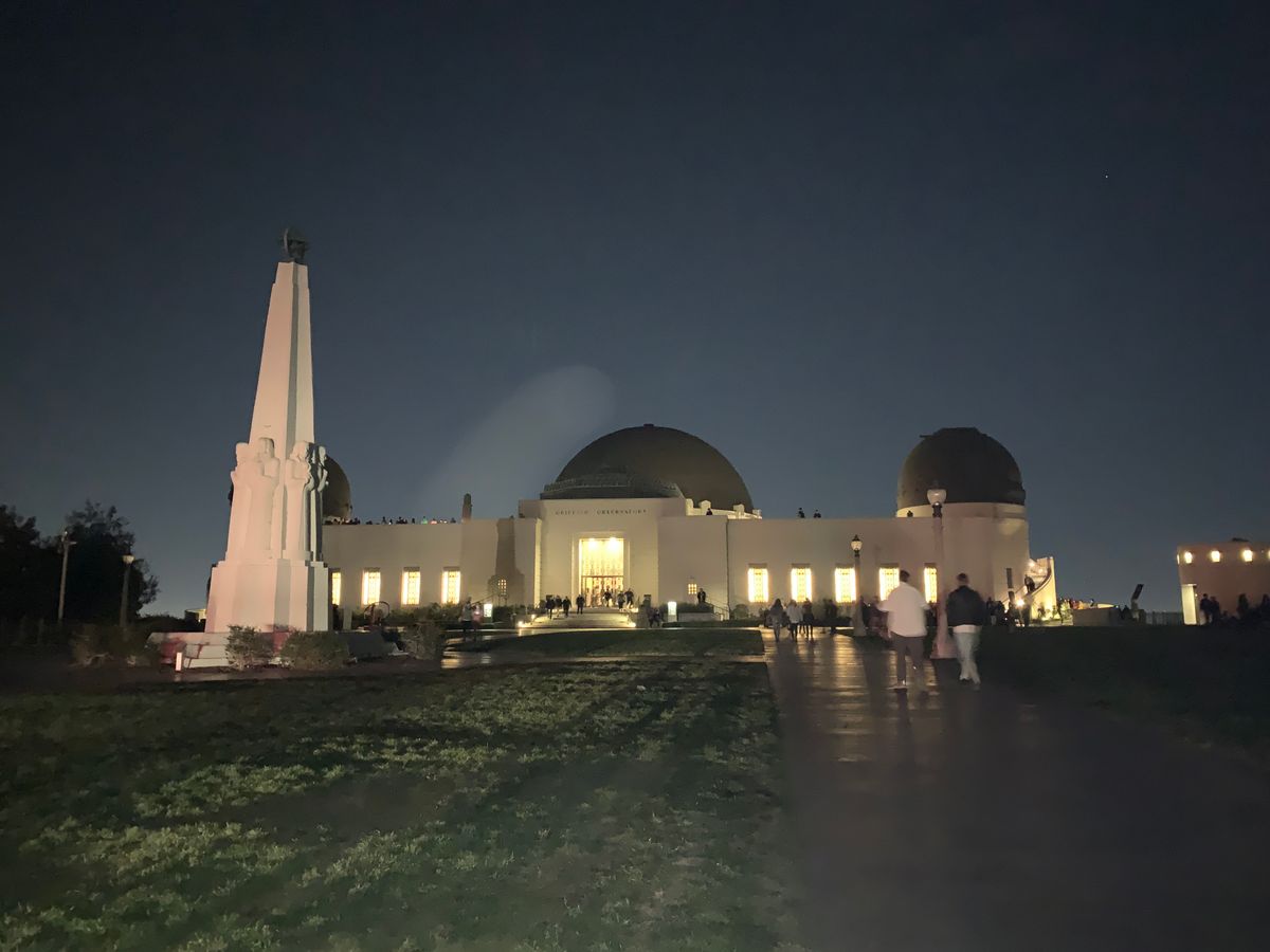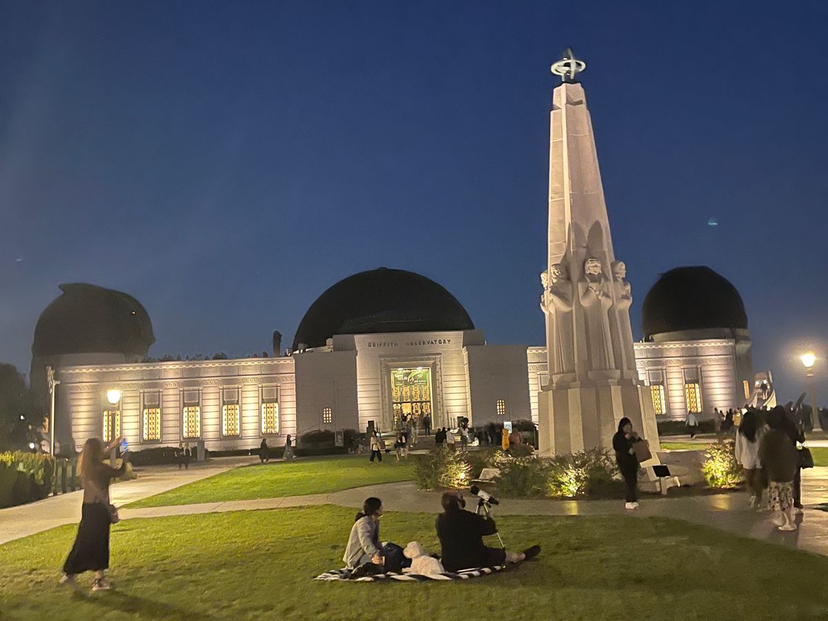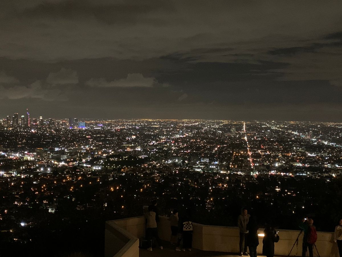 グリフィス天文台からのロサンゼルスの夜景は、とても広くて綺麗で、夢のようでした。天文台の入口前にある、大きな望遠鏡でみた月の表面には驚きました。