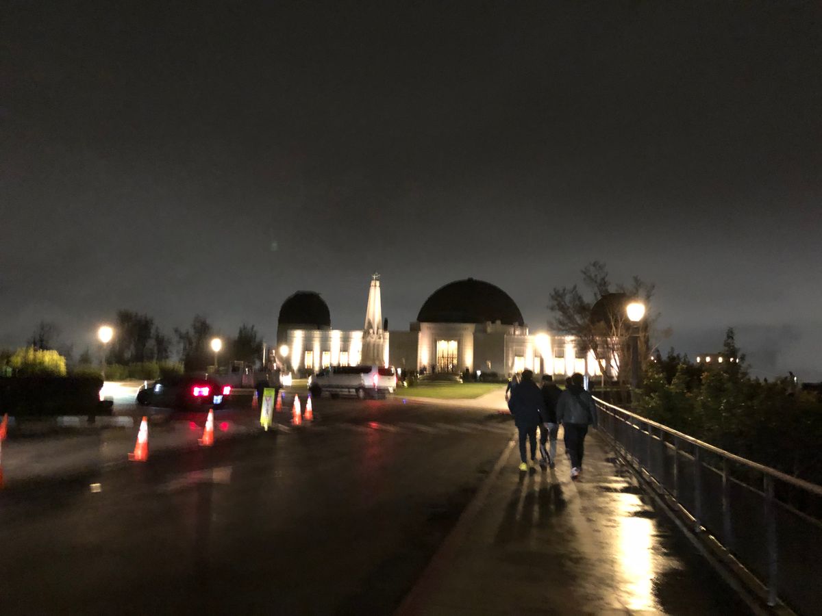 アメリカならではのボリューミーなステーキを食べたあと、グリフィス天文台へ。あいにくの雨だったけれどグリフィス天文台からの一面に広がる夜景が綺麗でした。