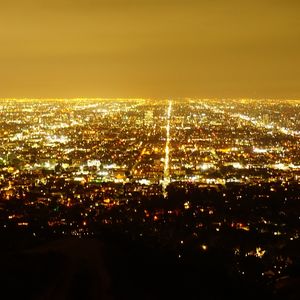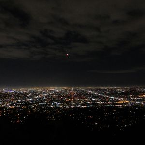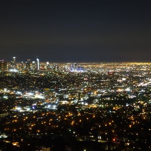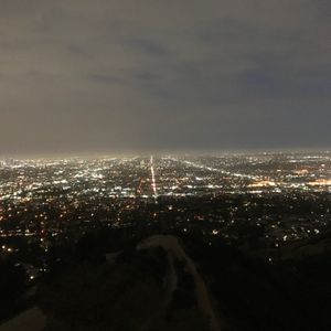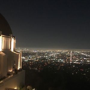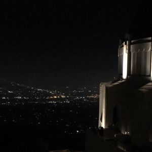 ロサンゼルスは綺麗に晴れていてもすぐに曇ってきたり、霧が出ることもあるみたいですがこの日はとても綺麗に夜景が見えました。建物の中にも入れ、展示物も見えます。(お土産屋さんは閉まっていましたが、電気はついていました)