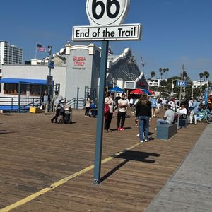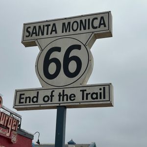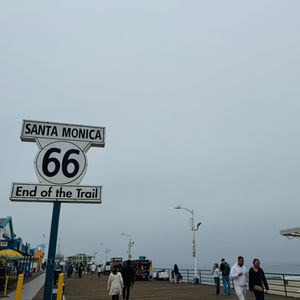 最初にルート66の終焉の地、サンタモニカへ。Disneyのカーズ好きな私は是非来たかった街でした。ガイドさんのお話通り、海の水は確かに冷たかったのですが、良いビーチでした。