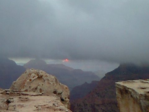 このツアーのメインはグランドキャニオンの夕日と朝日を観るというものだったのですが、なんと雨!