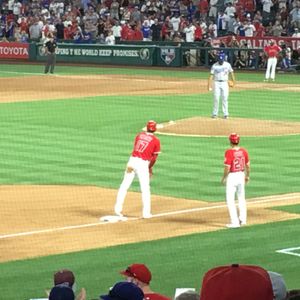 真っ赤なエンジェルスで 花火もあがるし のりはいいし しかし相手側のファインプレーには敬意を示すし とても楽しかった!エンジェルスのTシャツも楽しい。しかし何よりも スマホ忘れたのを持ってきてくださったことに 感激です。