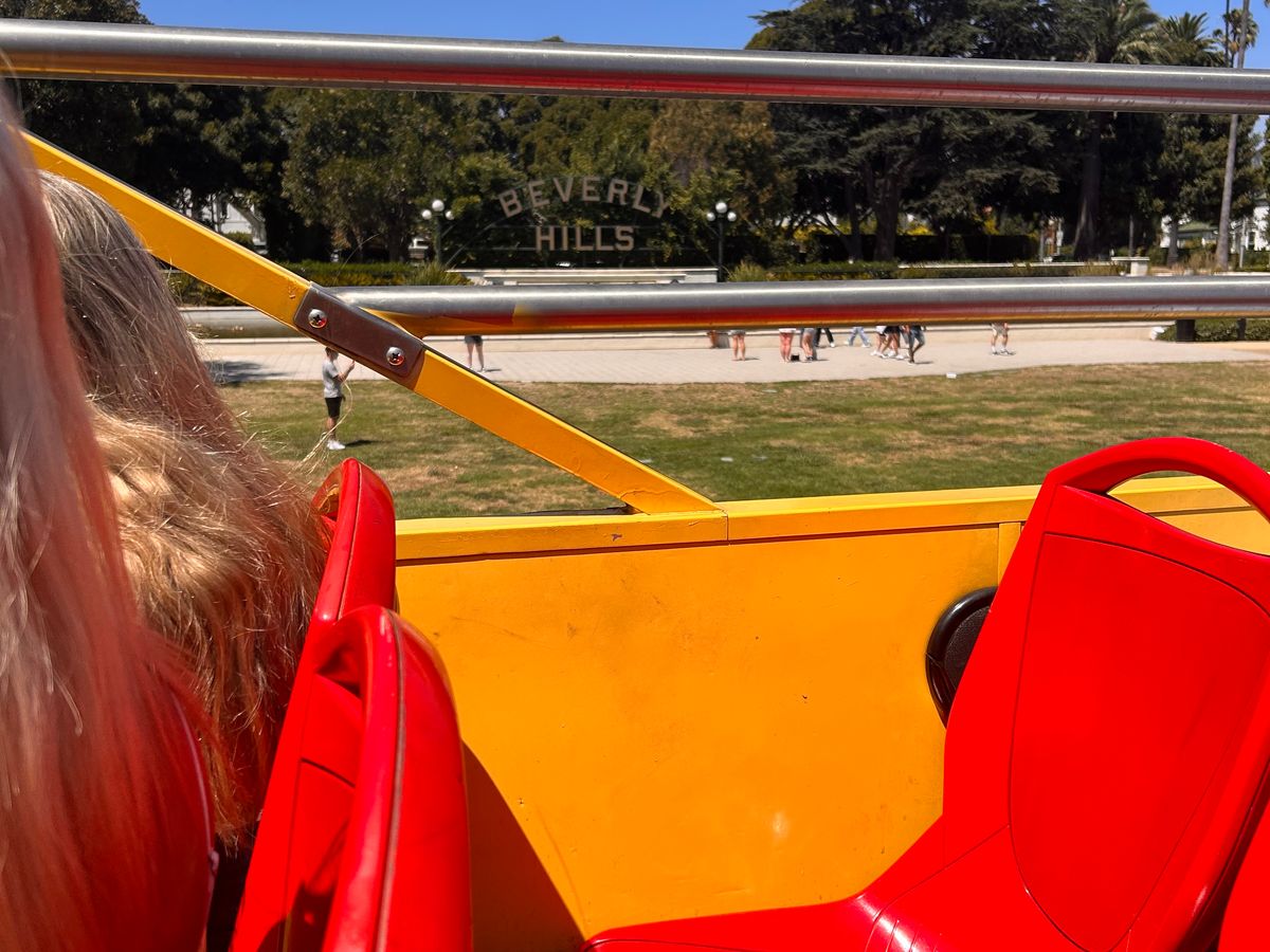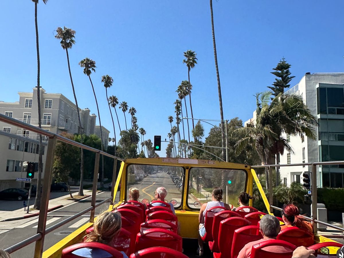 こちらのバスは、移動手段というよりも"観光"をメインとして利用させていただきました。私たちが利用したのは、レッドラインでハリウッドのチャイニーズシアター前を出発し、ビバリーヒルズまで乗りました。ロサンゼルスの気候はとても過ごしやすく、二階建てバスに乗ることによって風を感じながら、多少日光はありますが、快適に観光することが出来ました!