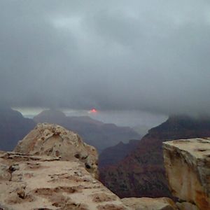 このツアーのメインはグランドキャニオンの夕日と朝日を観るというものだったのですが、なんと雨!