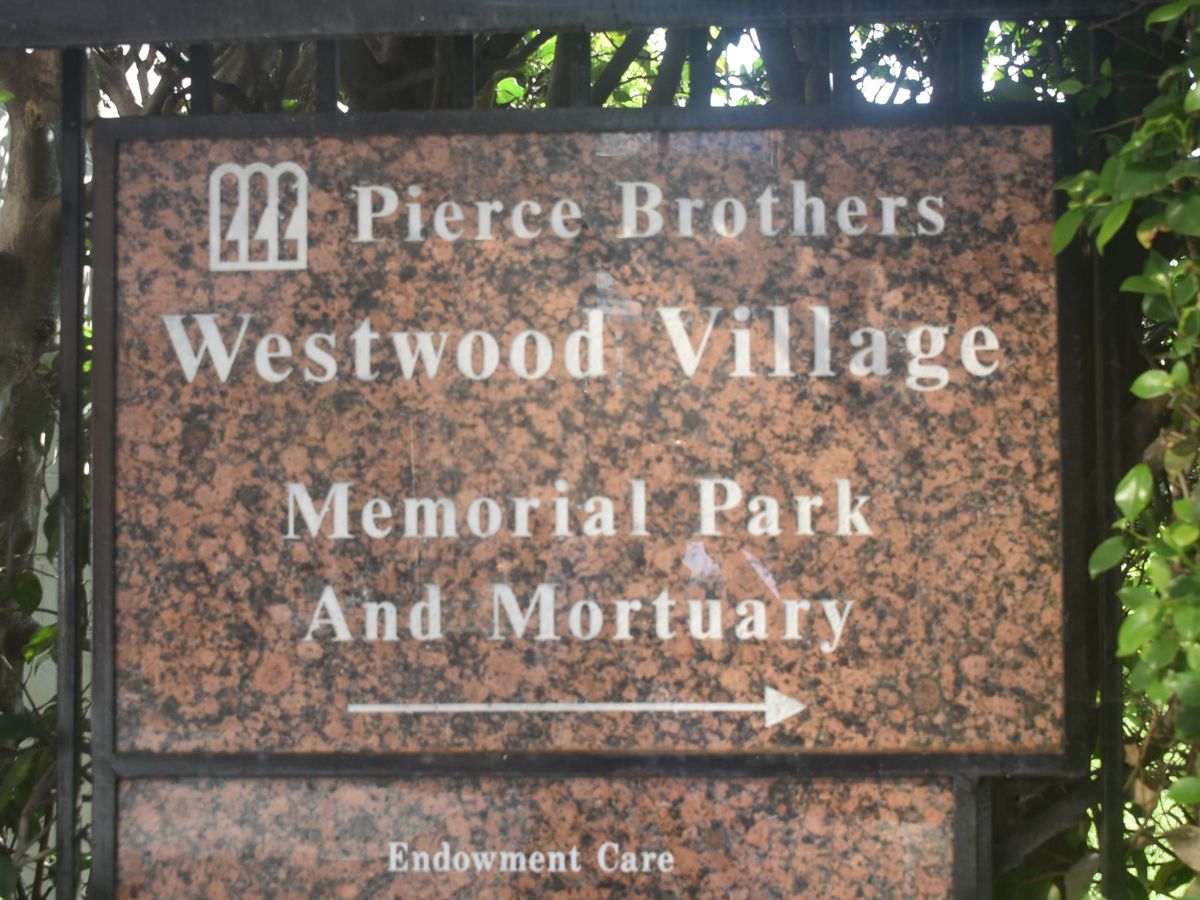 UCLAの近くにあるウエストウッド・メモリアルパークに行きました。この墓地には、マリリン・モンロー、ナタリー・ウッド、ジャック・レモン、ファラ・フォーセット・メジャーズ、カーク・ダグラス、ロバート・ミッチャム等々のお墓があります。
