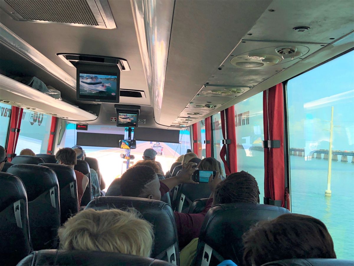 バスは新しく座席も柔らかくゆったりして快適でした。途中30分ほどの朝食休憩があり、ペットボトルの水も買えます。セブンマイルブリッジを渡ってしばらくして到着です。セブンマイルブリッジでは前の方の座席に行けばパノラマで見られるのでおすすめです。