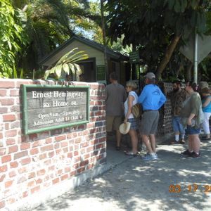 スタッフ、藤田さんの詳しい説明、お気遣いで、充実した1日を過ごすことができました。7マイルブリッジ右側のメキシコ湾のエメラルドグリーン、そして左側の大西洋の海の色の対照に、うっとりしました。絶景でした。キーウエストのアメリカ最南端からはキューバが見えるそうです。私が訪れた日は見れませんでしたが、見えたらすごいだろうなと想像をかき立てました。ヘミングウエイが2人目の奥さんと暮らした家への入場料は13ドル。自宅を拝見した後、中庭にいる猫を見ました。全部で50~60匹いるそうで、近親相姦により指が6本ある多指症の猫を写真に収めました。ヘミングウエイがかわいがっていた猫だそうです。次に、トルーマン大統領の別荘地へ。敷地が広かったため、small white house のみを見学。タイムスリップしたような妙に複雑な気分になりました。トルーマンといえば、日本への原爆の決断をした大統領だからです。さて、集合場所へ向かう途中で大きなparrotを頭や肩に乗せて写真撮影をしてくれるおじさんがいました。10ドルでしたが、撮影してもらい、お気に入りの写真の一つになりました。