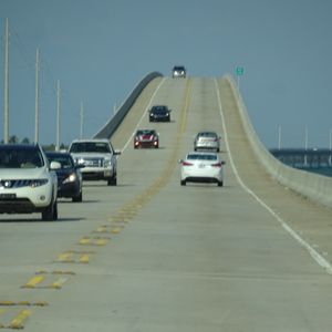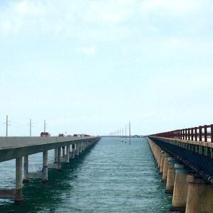 キーズ諸島をつなぐロングブリッジ。青い海の上にどこまでも続く直線の道路は絶景です。