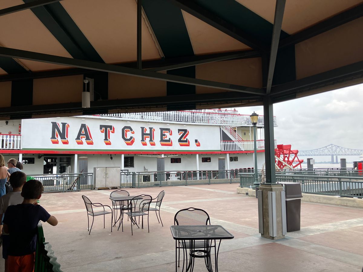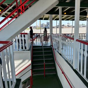こちらのチケットの2次元コードを持っていけば、列にそのまま並ぶことができました。食事なしプランにしたので、1番下の階で椅子に座ってクルーズを眺めていました。ドブ色の川なのできれいではないですがニューオーリンズの町並みを見渡すことができますし、ディズニーランドの船のモデルになったとも言われていますので、乗る価値あると思います。1階に売店があって、飲み物や軽食が売っていましたが、少々高かったです。