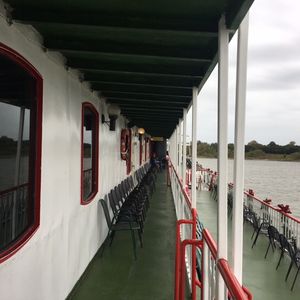 セーヌ川、ナイル川などいろいな川のクルージングを体験し一度は乗りたかったスチームボートに乗船できました。乗船に際して長く並ぶこともなく、どのデッキも混みあうこともなく晴天の中2時間のクルージングを楽しめました。