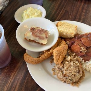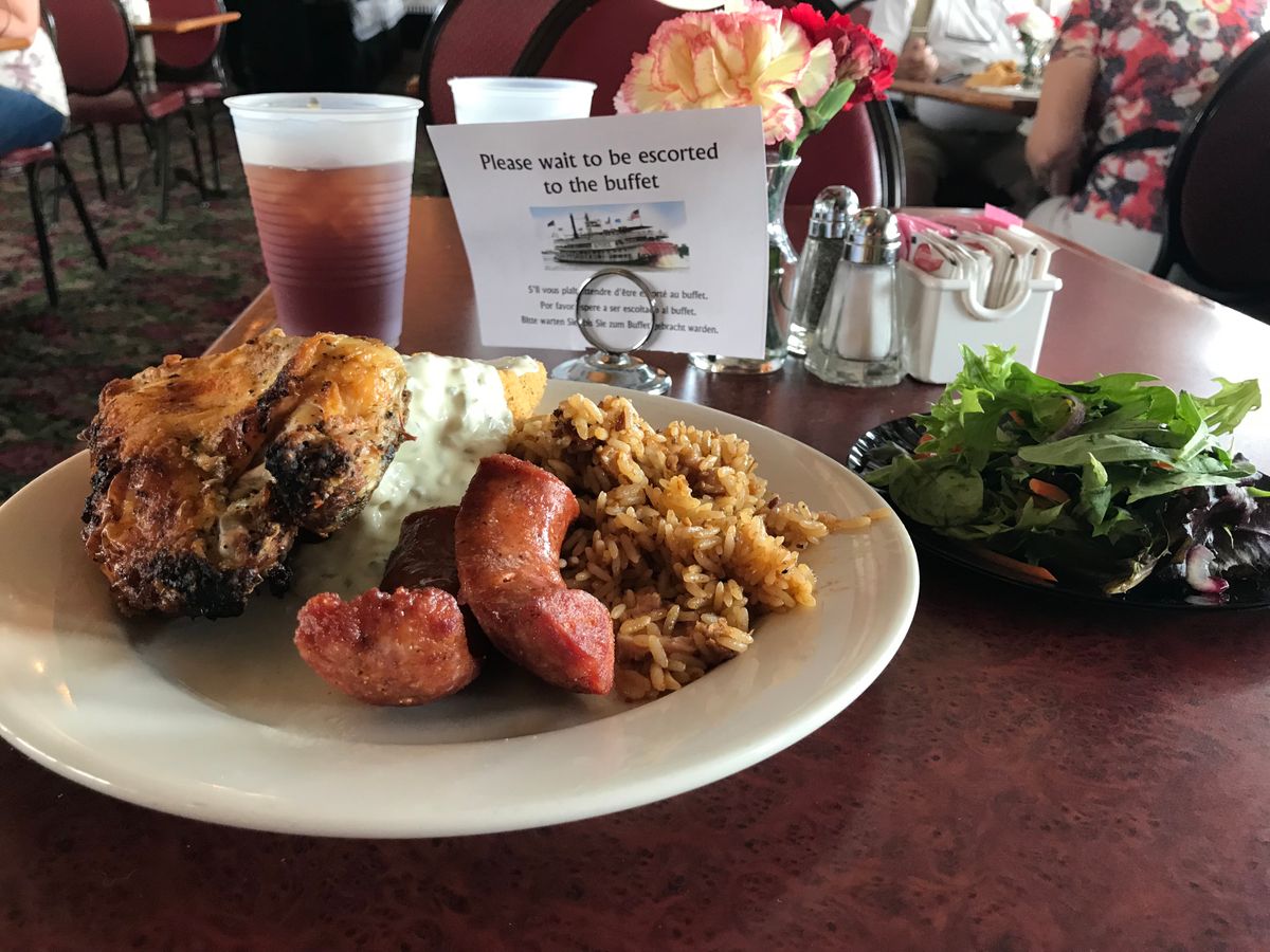母が渡米してきたので、一緒に行ってきました。ランチ付きクルーズはこのサイトでは24時間前までしか受付ができなかったようなので私の分は他のサイトから予約しました。前回はクルーズのみでしたけど、今回はせっかくなので南部料理を楽しみたいと思いランチ付きにしましたが、全部食べ尽くすことができました。ランチには紅茶やお水コーヒーも付いていたので、それ以外に料金はかかりませんでした。