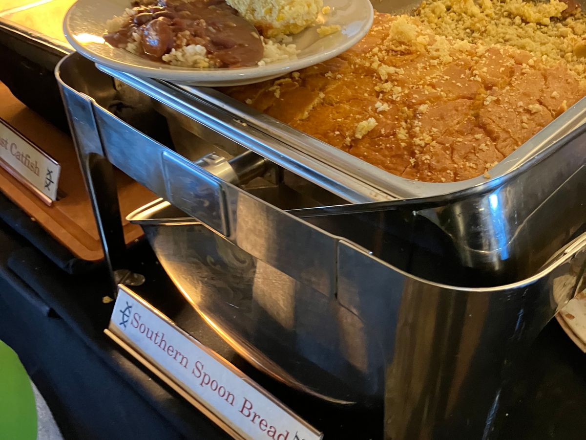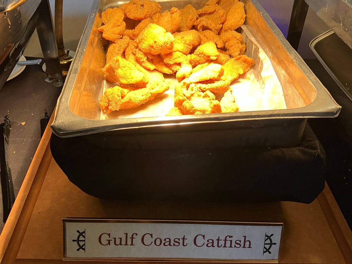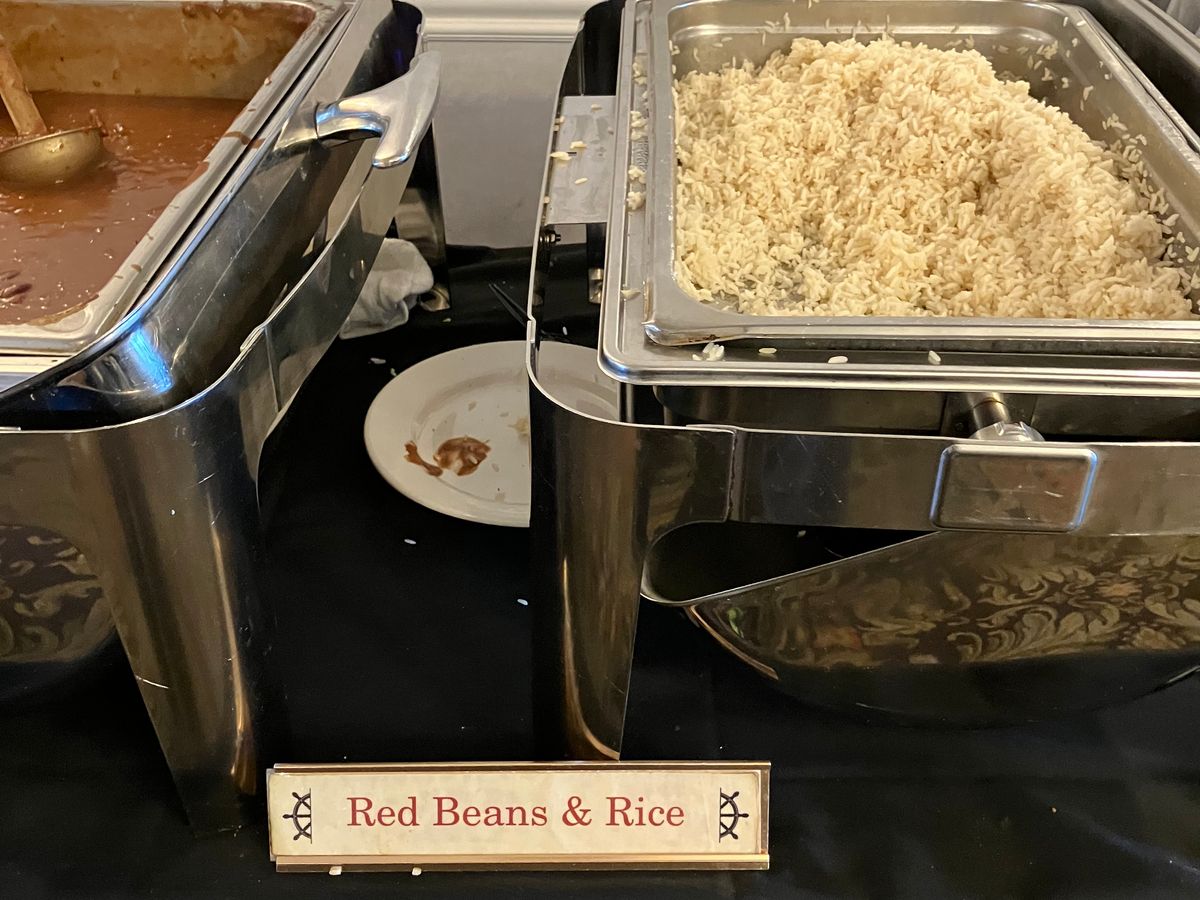 ランチ付きでもわずか12ドルの差なのでどうせスナック程度かと思ったら、暖かいハムをメインに揚げドーナッツのベニエ、コーン粥のグリッツ、パンプディングなどが並びボリューム満点。こういう観光地のビュッフェは終わりが早いですが、ここではクルーズが終わる30分くらい前まで食材が補充されるので、慌てずに食べられます。