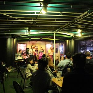 ジャズのライブは、屋根のない一番上のデッキにセッティングされていたので、そこに座りました。