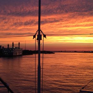 ニューオリンズの街を川面から♪ ミシシッピ川ジャズクルーズ(夜)に参加しました。日が沈むころ、夕日が ミシシッピ川に染まり、とても思い出深いクルーズになりました。船上で聴くジャズもノリノリで大変楽しい体験をさせていただきました!