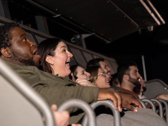 「Rise NY」の目玉アトラクション!30フィート(約9m)の高さまで舞い上がり、180度、40フィートのプロジェクションドームで、風やミスト、香りを感じながら、自由の女神やエンパイア・ステート・ビルなどを上空から楽しむ4D体験です。