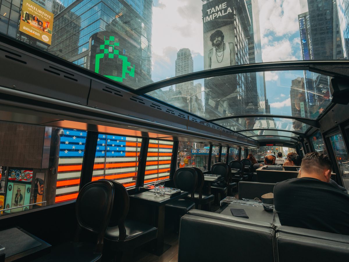 バストロノーム(BUSTRONOME)食事券&事前予約サービス 2階建てパノラマバスレストラン<地下鉄57丁目駅付近発>*前日17時まで予約OKの写真一覧 | ニューヨークの観光・オプショナルツアー専門 VELTRA(ベルトラ)