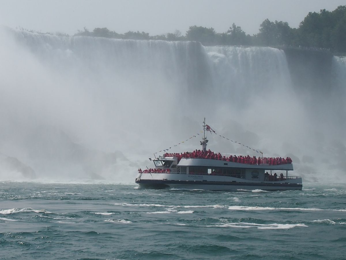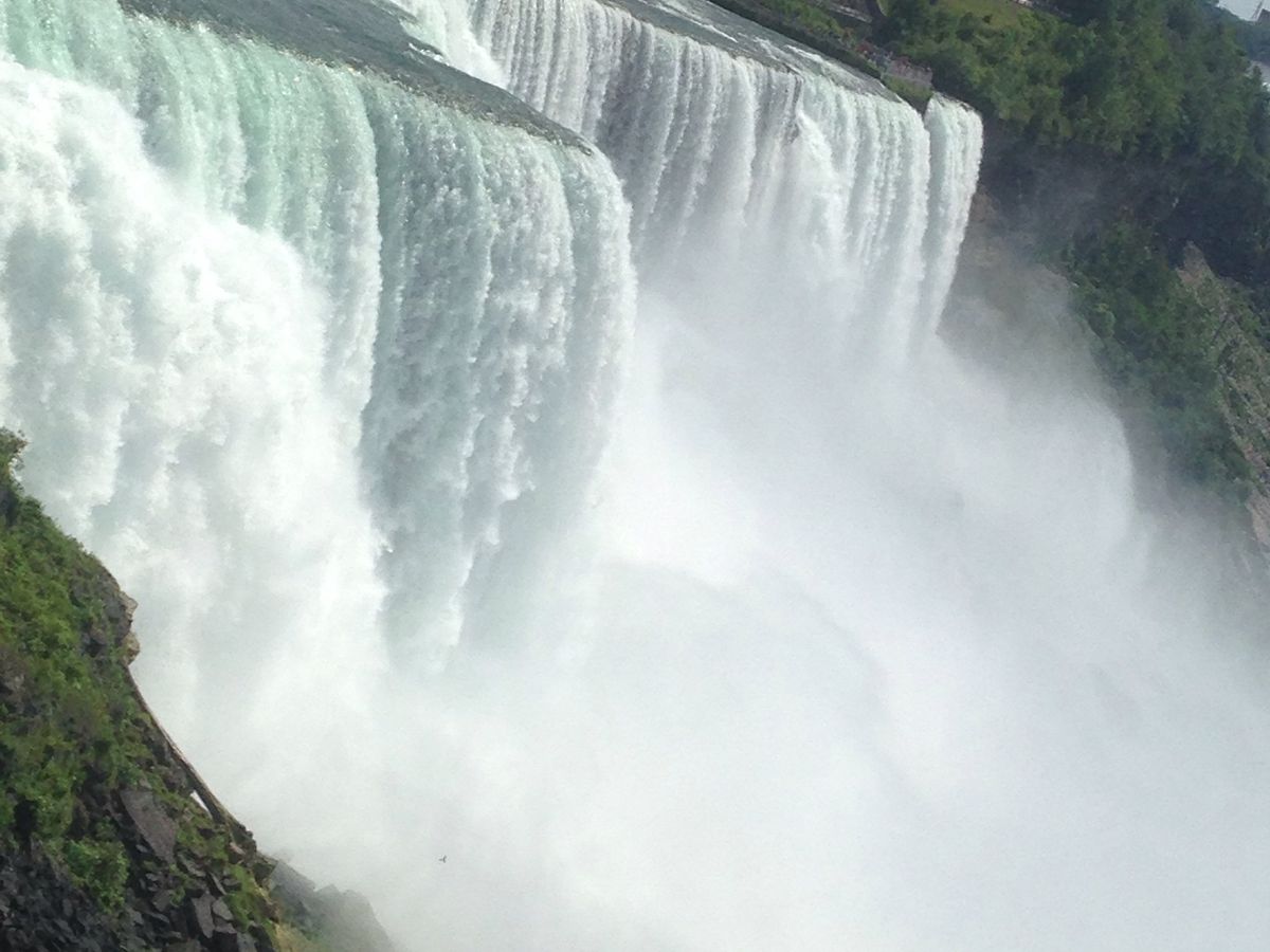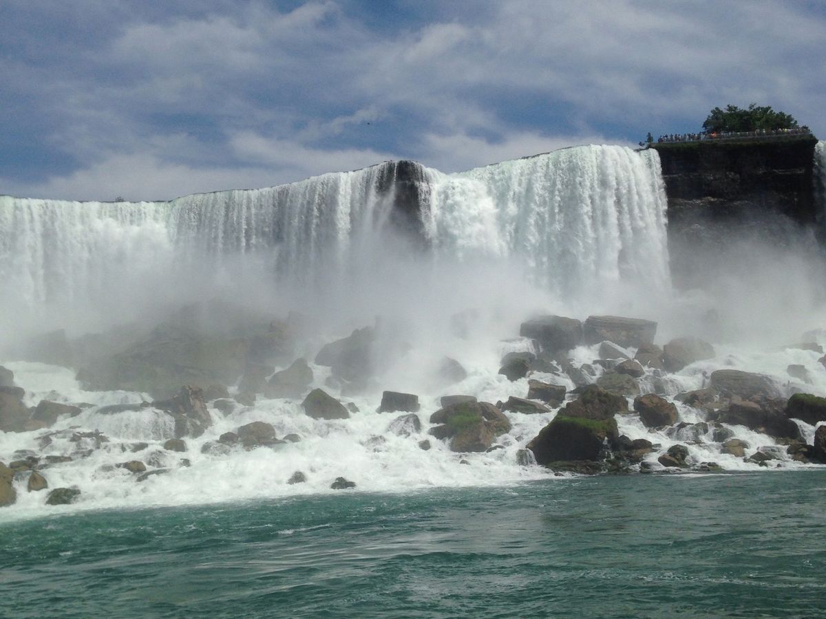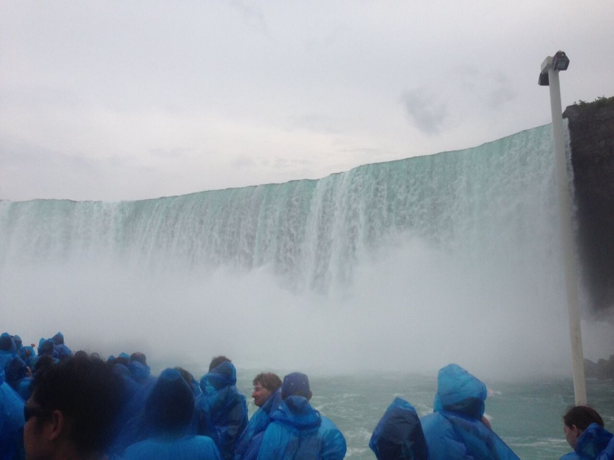 JFK空港からナイアガラ滝ツアーへ。水しぶき(暴風雨)浴びながらのボート・ツアーも家族で大はしゃぎで楽しみました。夏なので身につけているものもすぐ乾きました。前夜早寝してのツアー参加でしたが、世界級エンターテインメント、その価値十分にありました。