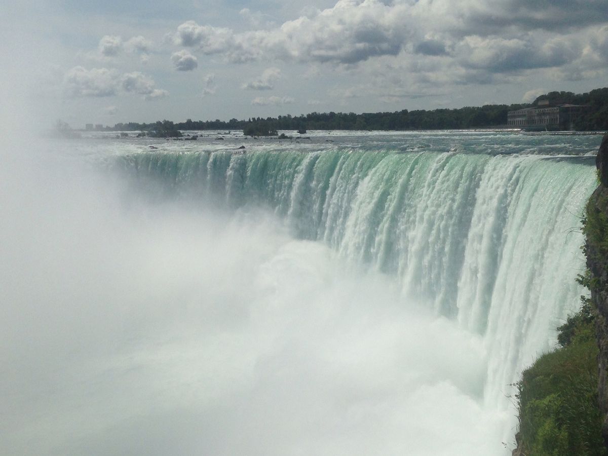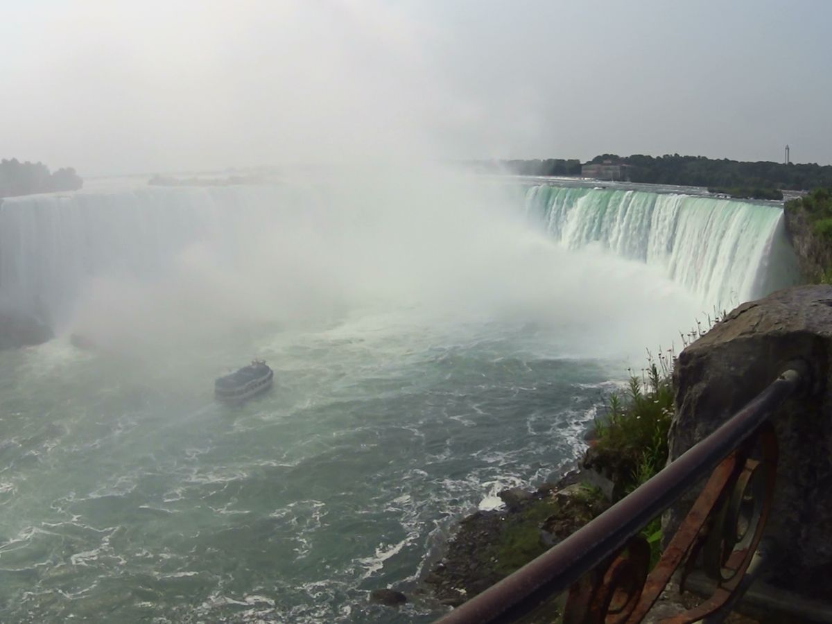 天候に恵まれカナダ、アメリカの二つの滝を両岸から霧の女神号では滝壺の近くまで行きました。