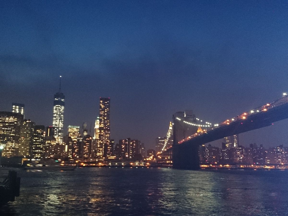 まずはダンボ地区から観るブルックリンブリッジ(((o(*゚▽゚*)o)))しかし突然の豪雨Σ(゚д゚lll)雨に霞むブルックリンブリッジもオシャレでサイコーです( ´ ▽ ` )ノ