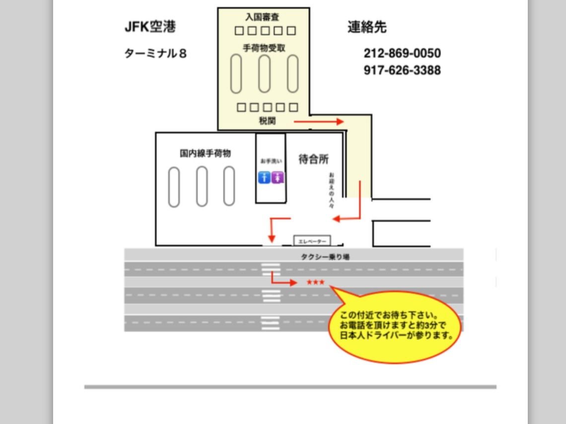 帰りの、ホテル→JFK空港までの送迎をお願いしました。