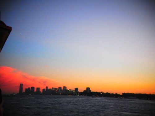 日の入りが遅いため、時間いっぱいナイトクルーズを期待する方には向かないかもしれませんが、川に映る夕焼けと、次第に灯りのついてゆくマンハッタンを眺めながらビールを飲むのは最高でした。