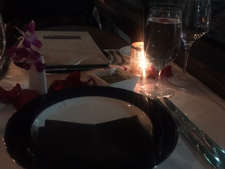 お食事、シャンパン、薔薇の花束、シャンパングラスお土産、窓際確約がセットになっていたので即決しました。