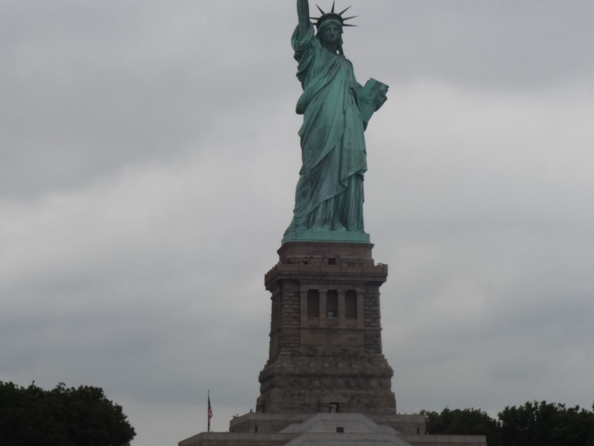 一度見てみたかった自由の女神のクルーズへ。自由の女神像が見えてくると雨だったものの、外の展望デッキに出て写真をみんなパチリ。肌寒かったものの、ずーっと眺めて見とれていました‼