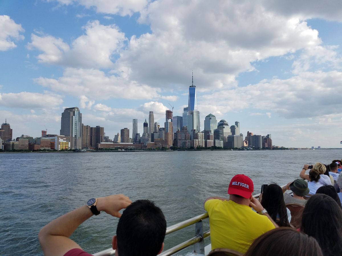 集合場所がタイムズスクエアから20分ぐらい歩き、結構遠かったです。フェリー乗り場もSouth Ferryからだと勘違い慌ててタイムズスクエアに戻り、時間に間に合ってホッとしました。乗船時間は1時間ぐらいで自由の女神やマンハッタン島を海から見ることができ、とても良かったです。日向にいたので日焼けしました。帽子があると良いのですが風で飛ばされそうになるので注意です。屋根があるところも少しあるので、そこで見るのも良いかもしれません。