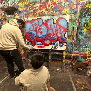 空間自体もスプレーアート満載で、写真映え、ハンパないです。作品は持ち帰れます。