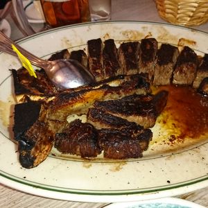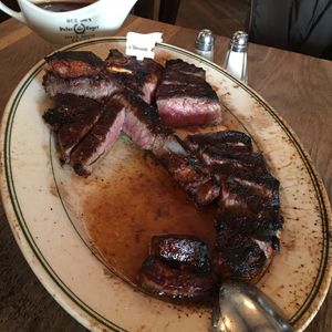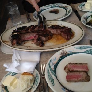 二人でシェアできるポーターハウスを注文しました。日本では味わうことができないようなガッツリお肉を堪能しました。食べきれなかった山盛パンは袋をいただいたので持ち帰りました。
