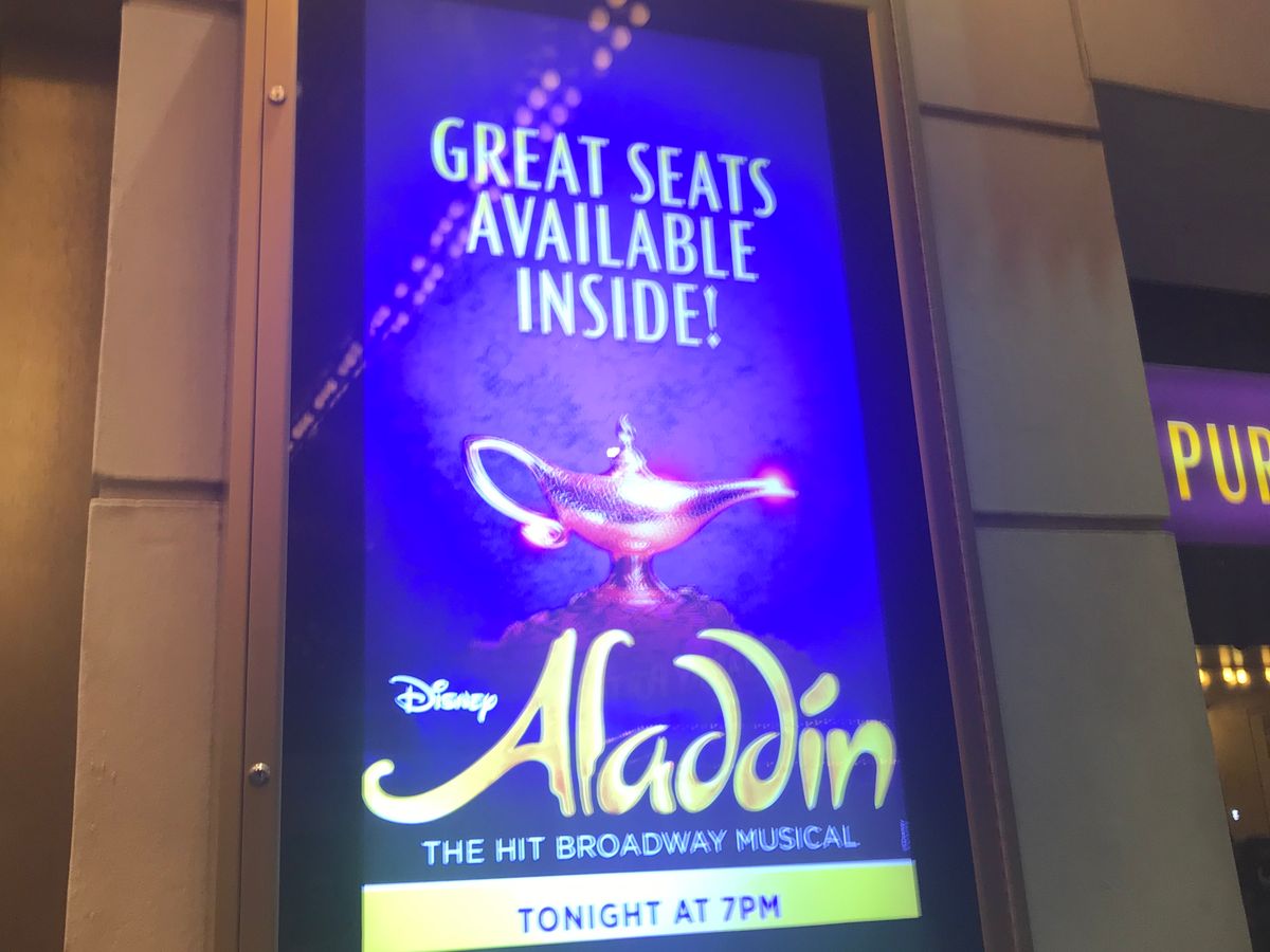 日本でも鑑賞したアラジンをブロードウェイでも鑑賞したく予約しました。