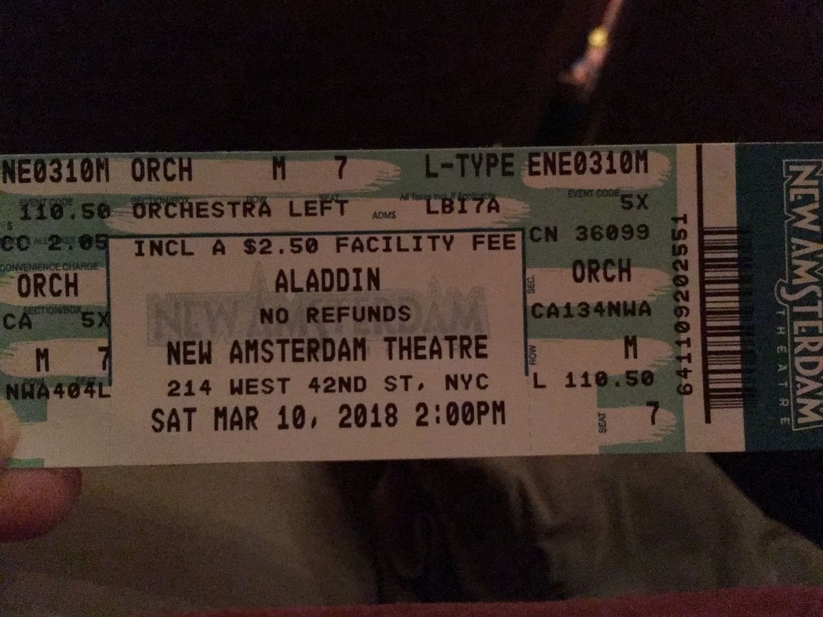 NYに来たからにはブロードウェイを見たいと思い、その中で英語が理解出来なくても分かりやすそうなアラジンを選んだ。