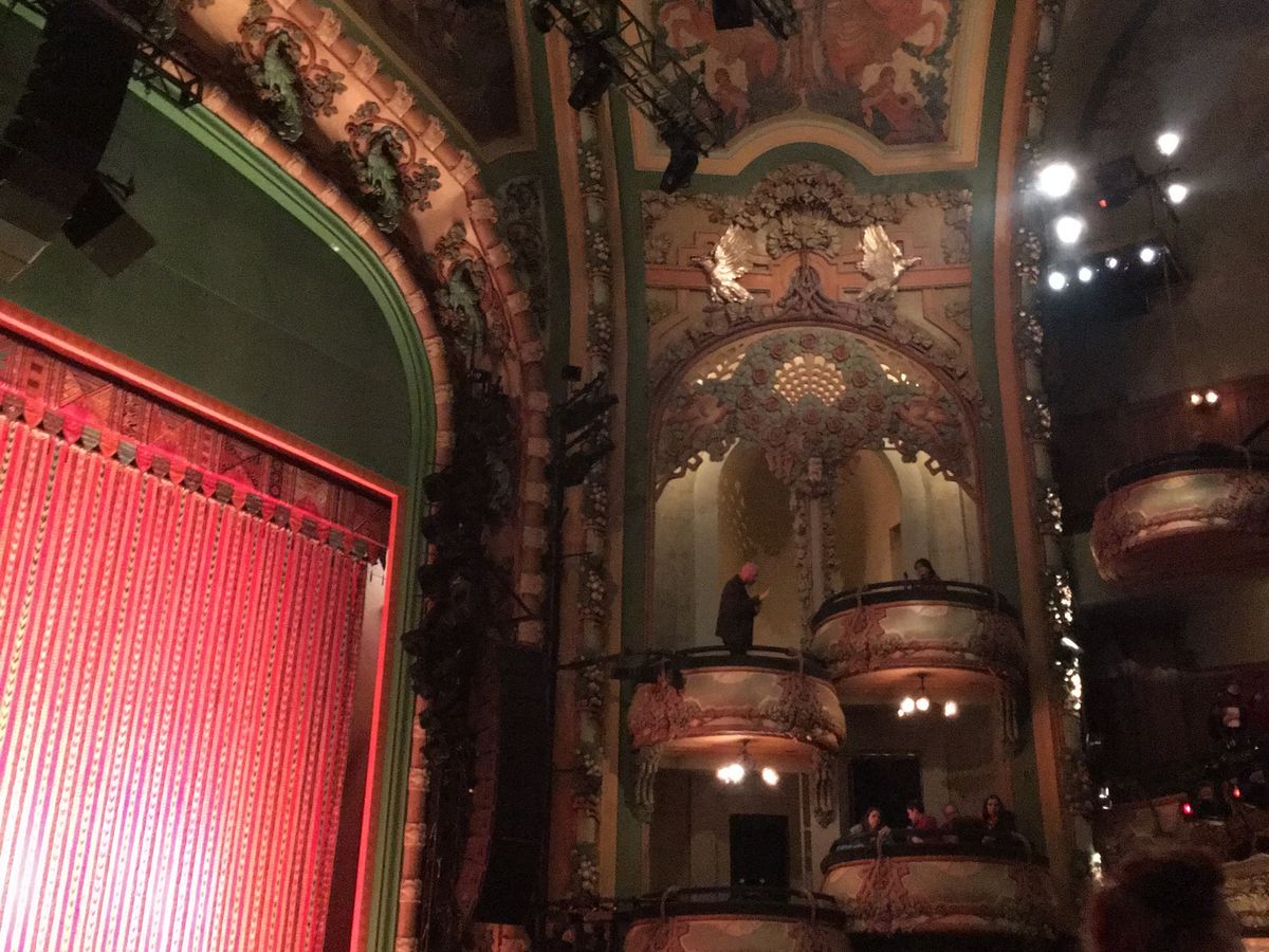 当初公式サイトで自分で座席選択して購入しようとしたのですが、どの席がいいのか分からず、運に任せてみようと思ってこちらで予約しました。席はオーケストラ席の中央一番後ろでした。会場かこじんまりしてるので、一番後ろといっても、かなりステージから近く感じました。演者さんの顔もハッキリ見えました。自分では前の方の席を予約しようとしていましたが、今回の席で最高によかったです。(しかもこちらの方が安かったです)英語はほぼ聞き取れませんでしたが、事前にDVDを見て行ったので十分楽しめました。)夢みたいな時間で、当日は興奮で眠れませんでした。)19時開演で21時半に終わりました。持ち込みもOKだったので、近くのブルーボトルコーヒーでコーヒー買って、休憩時間にはエッサベーグルを食べて、終了後はタイムズスクエアを散歩して、一気にNYを満喫できた夜でした。ありがとうございました。