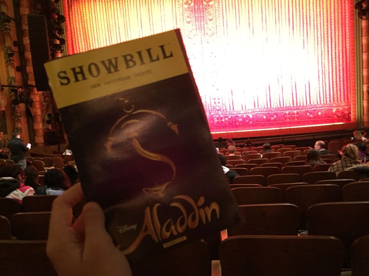 メザニンを予約し、前から三列目という素晴らしい席でした。主演のお二人は勿論ですが、ジーニーと悪役の方の演技、そして大勢のダンスシーンは圧巻でうるっときました。ですが何せ英語がわからないので途中眠気が…でも後半は空飛ぶ絨毯や、生歌のホールニューワールドなど見所満載でやはり感動しました。