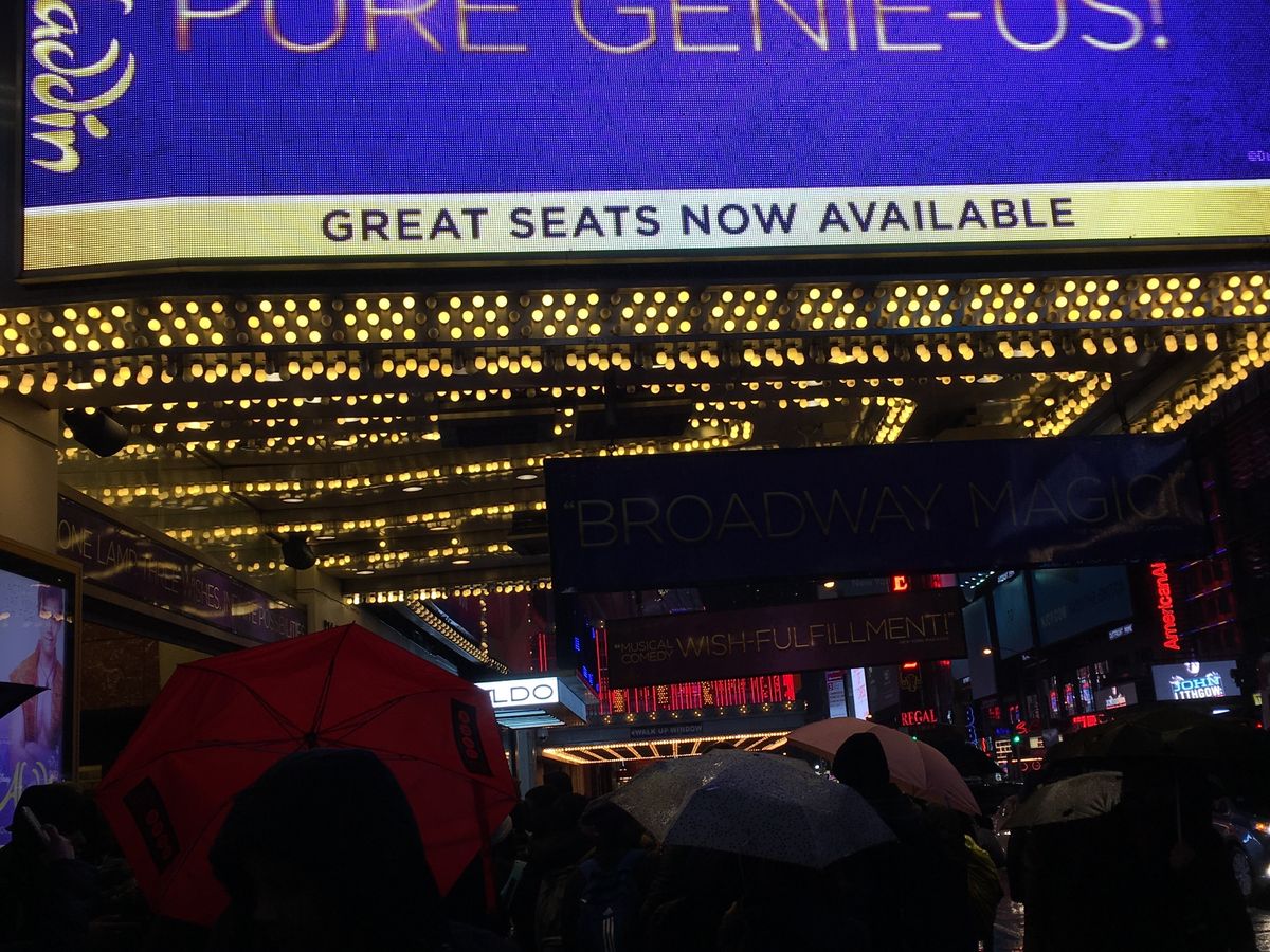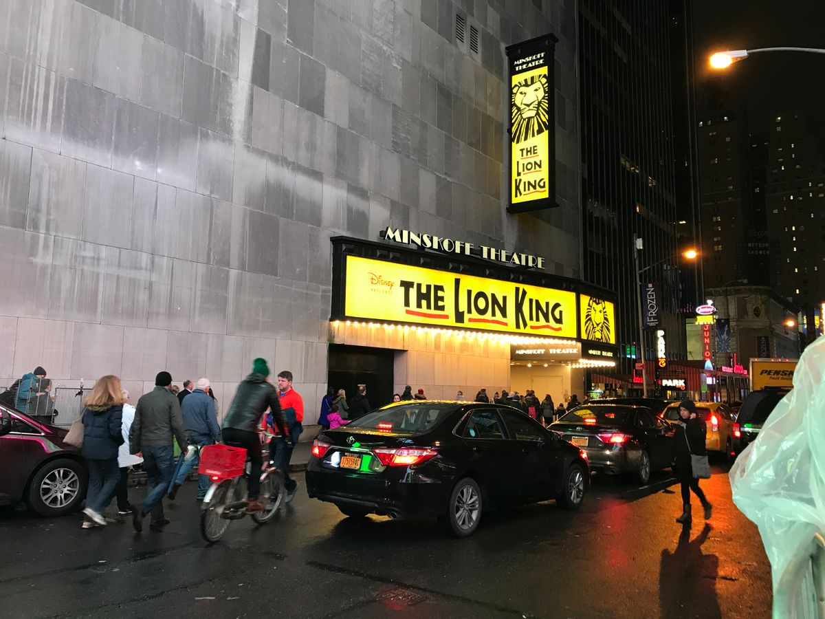 初めてのブロードウェイでライオンキングを見に行きました。予約時点では座席が決められていないので、本当に見れるのかと不安な気持ちもありましたが、チケットもスムーズに受けとれ問題なく見ることができました。それに加え、一階席の左前から3番目の当たり席であったため、間近で鑑賞できとても満足しています。館内では鑑賞中、飲食ができることも海外ならではなので気楽に見ることができ良かったです。