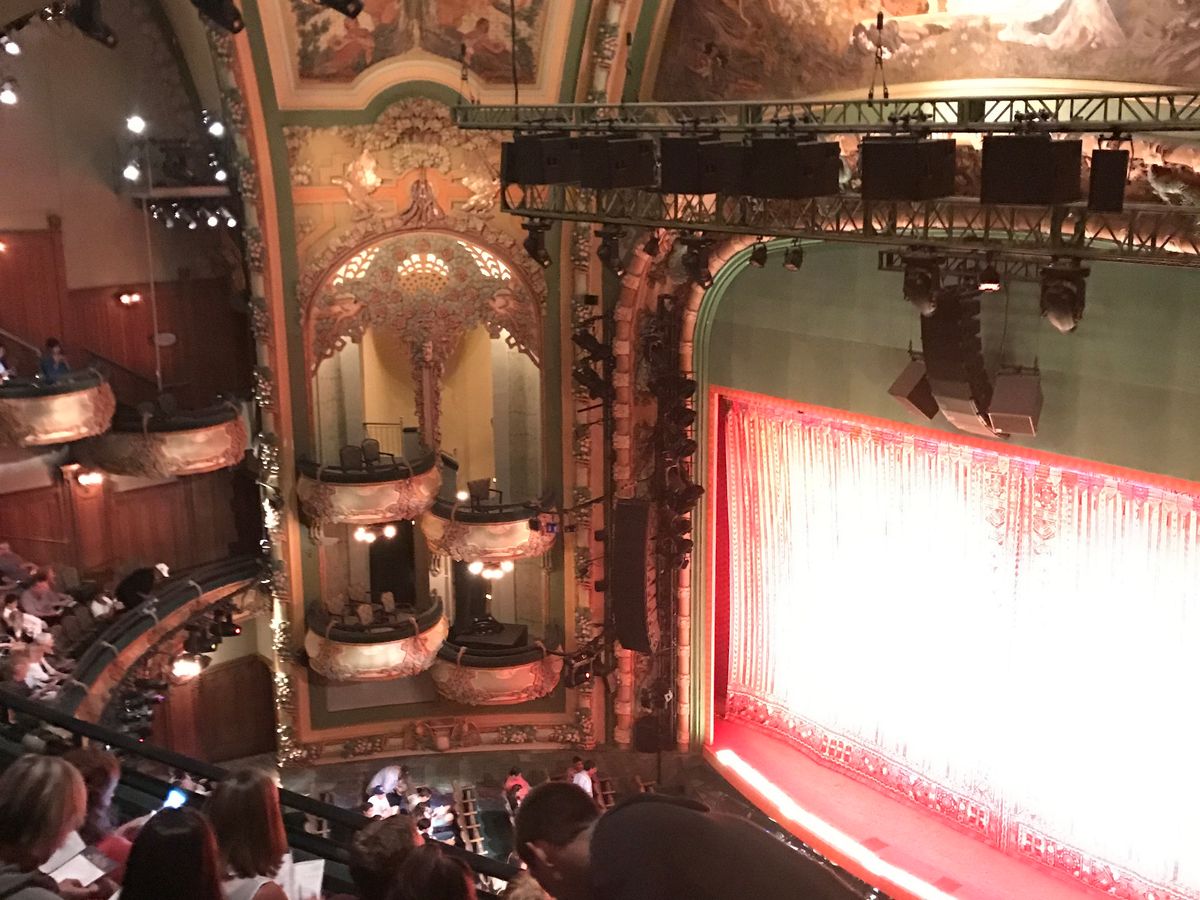 初めてのブロードウェイミュージカル、英語だし、と席はバルコニー席にしました。3階で上から見るのも悪くはなかったですが、やはり正面から見た方が楽しかったなと、もし次の機会があったら、席はもっといいところにしようと思います。
