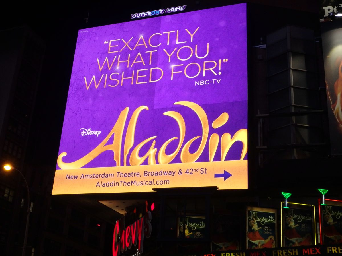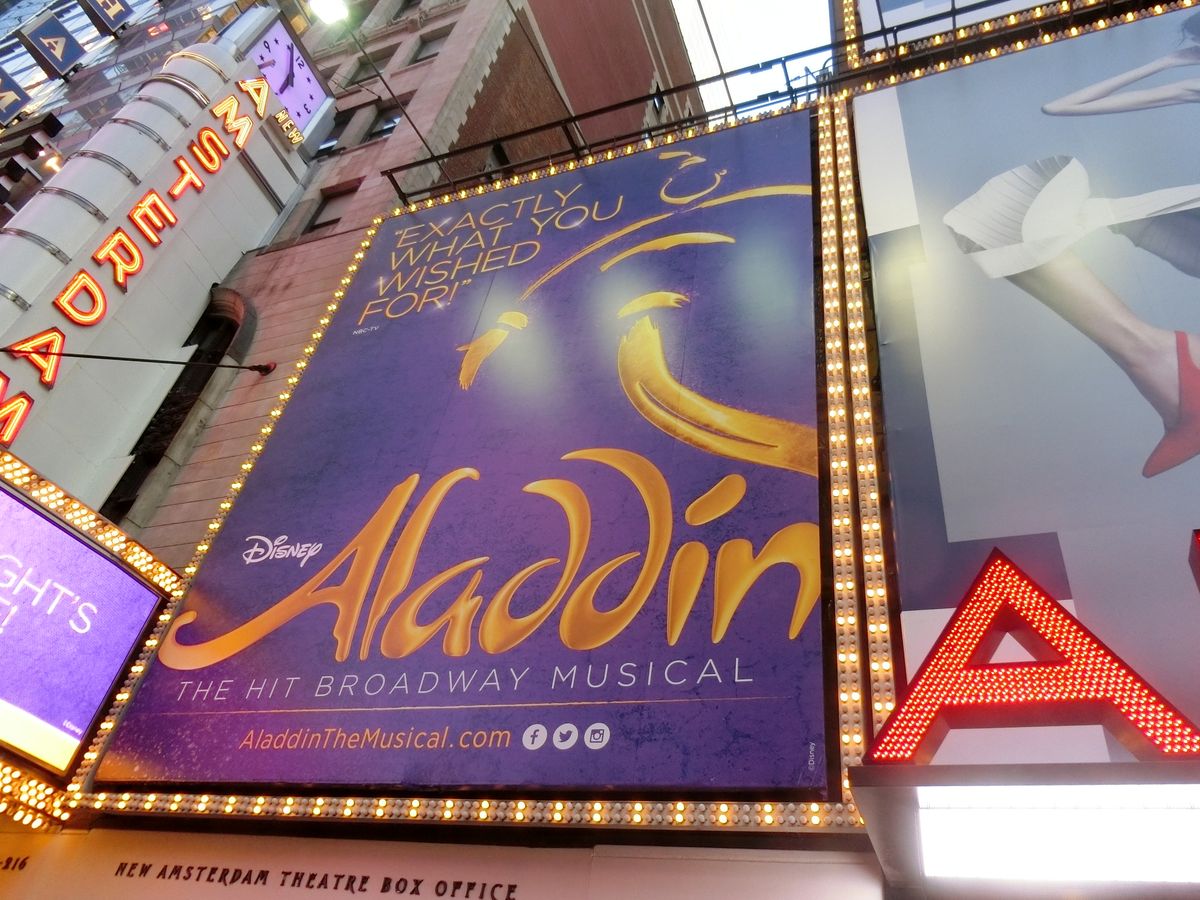 ニューヨークにいくのなら、やはりブロードウェイを見たいと思い、英語に自信がなくても楽しめそうなアラジンにしましたが、大正解でした。コミカルなギャグ、ハラハラするアクション、ロマンチックなシーン、すべて素敵な歌とともにゆっくり楽しむことができました。