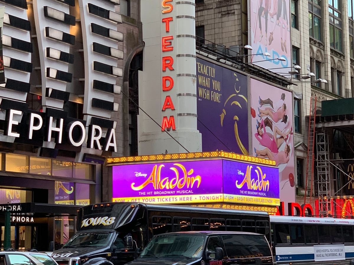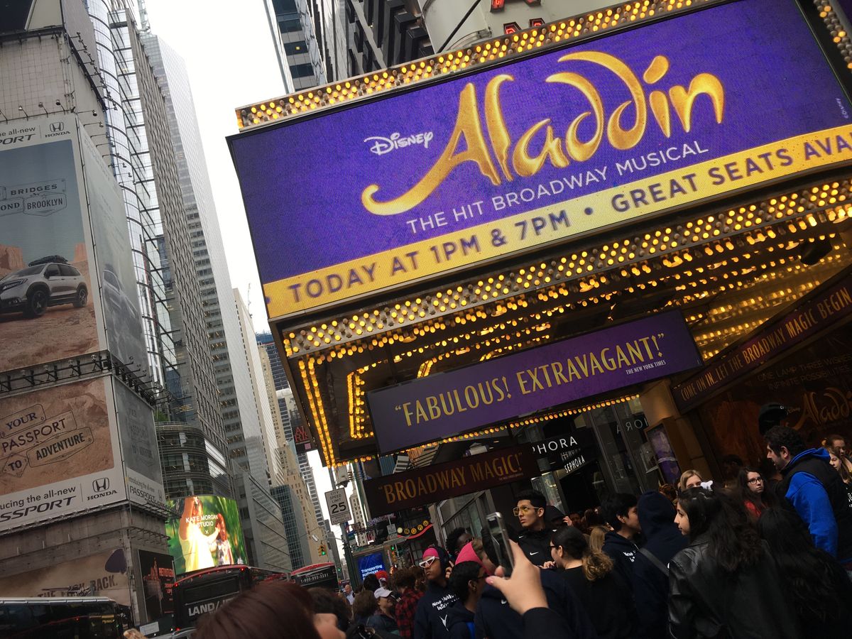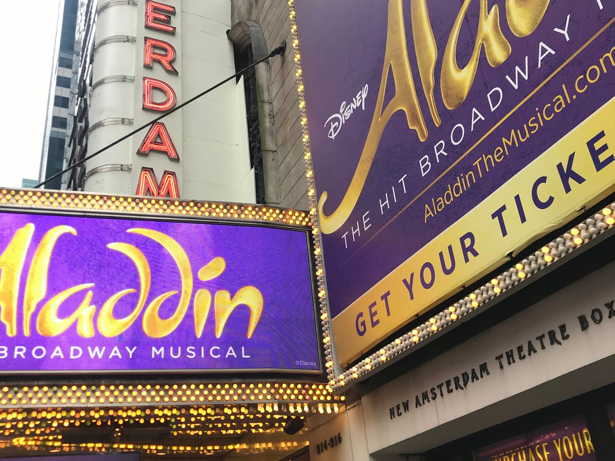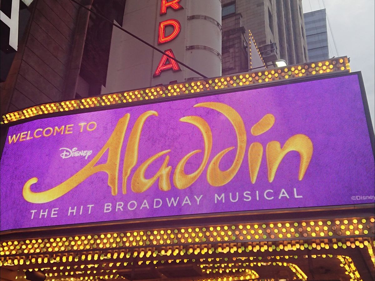 初めてのブロードウェイは、英語ができない友達のため、ストーリーがなんとなくわかるアラジンに。