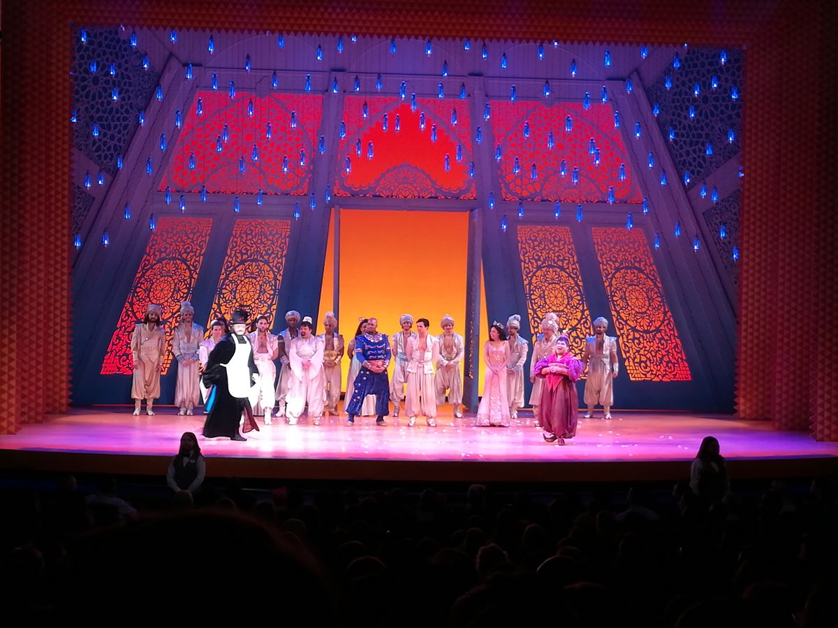 「アラジン」を観劇してきました。席が中ごろのほぼ真ん中で、観劇しやすかったです。音声ガイドも借りたので、内容も理解できました。普段ミュージカルにはほとんど行かないので、配役の皆さんの演技や衣装にも感激!劇場も素晴らしかったです。