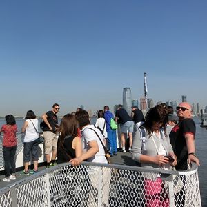 参加日が日曜日だったこともあり、NYの街中は車も少なく、ゆっくり走っていただき丁寧なガイドをしていただきました。9時の船に乗車ということで、ブルックリン橋?のマラソンイヴェントがあり、車をしばらく止められましたが無事に9時発フェリーに乗ることができました。朝早くの行動は、比較的すいているのでお勧めです。