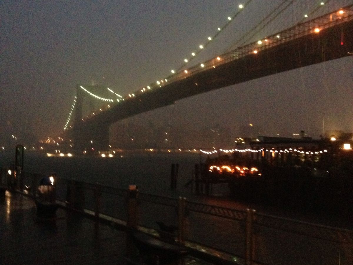まずはダンボ地区から観るブルックリンブリッジ(((o(*゚▽゚*)o)))しかし突然の豪雨Σ(゚д゚lll)雨に霞むブルックリンブリッジもオシャレでサイコーです( ´ ▽ ` )ノ
