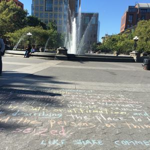 この後、5番街を南に下がり、フリッツ コレクション、プラザホテル、Apple Store、トランプタワー、UNIQLOなどや有名ブランド店を見ながらタイムズスクエアへ、ブロードウェイ劇場街を見つつ、ニューヨーク市立図書館、エンパイヤー・ステートビルディング、スパイダーマンに出てくるフラットアイアインビルを見ながらワシントンスクエアパークへ、ここで下車して散策、エンパイヤステートビルディングを門のアーチ内に見えるスポットを教えていただき、記念の写真を撮影しました。